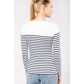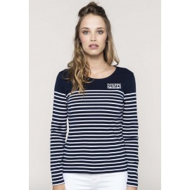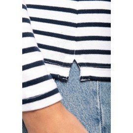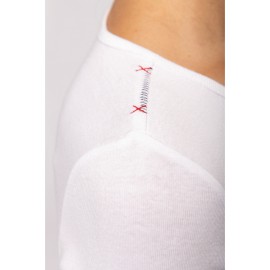 100% coton côte 1x1. Encolure ronde. Point fantaisie sur l'épaule. Fentes latérales.